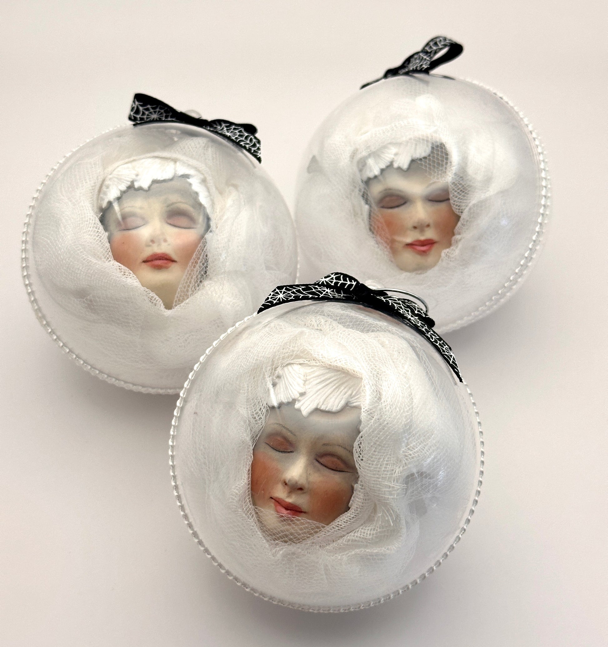 Sleeping Souls: Resin cast from original sculpture. Hand painted, encased in an acrylic bauble. 10cms diameter.